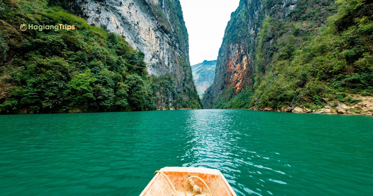 Tucked deep beneath the Ma Pi Leng Pass lies the turquoise Nho Que River, carving its way through the immense Tu San Canyon. After the exhilarating ride over the pass, many Ha Giang loop motorbike tour itineraries include a boat trip down the river. This provides a completely different perspective, looking up at the towering canyon walls you just rode across.