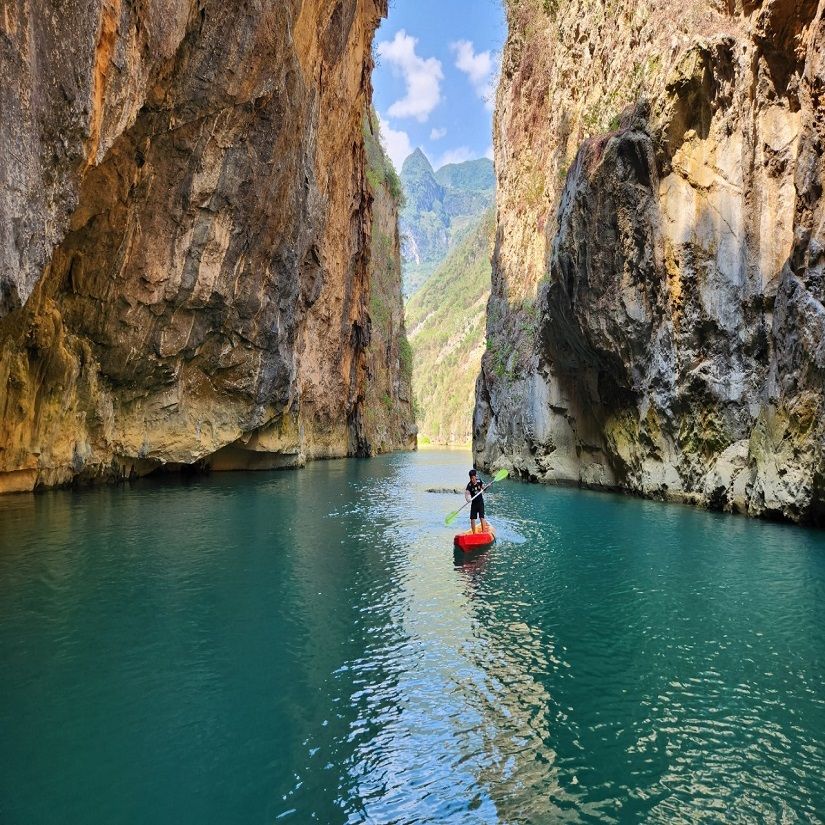 10:30 AM: Continue the journey on the legendary Ma Pi Leng Pass (One of the four most famous passes in Vietnam). Admire Tu San Canyon, the deepest canyon in Southeast Asia (800m), take a boat on the Nho Que River.